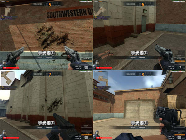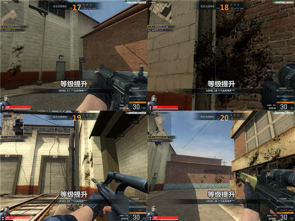 “升级”是枪王模式独有的玩法,率先在游戏中达到26级的玩家即可获胜。游戏中击杀或助攻都将获得五角星,(击杀获得2颗,助攻获得1颗)当累计获得3颗五角星后即可升级,此外,使用匕首成功击杀对手时将直接升级。
